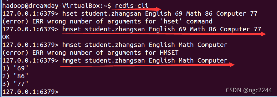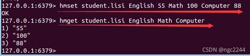 Hmset student.zhangsan English 69 Math 86 Computer 77