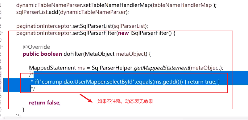 配置的SqlParserFilter除了对多租户有效果,对动态表也是一样有效果的