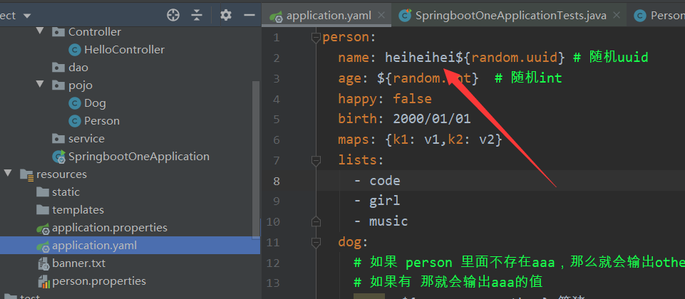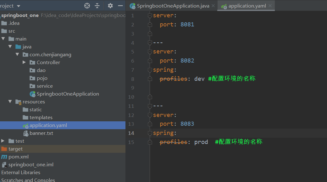 1、创建一个yaml文件,看内容,等同于上面 properties 的三个文件