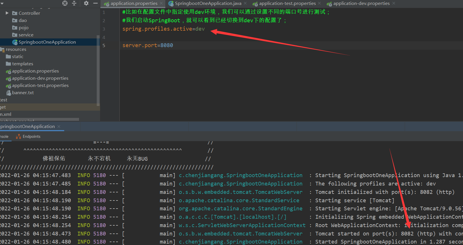 2、我们运行的时候,是走默认的8080端口,那么我们实际开发会有好几环境,怎么切换环境呢?很简单